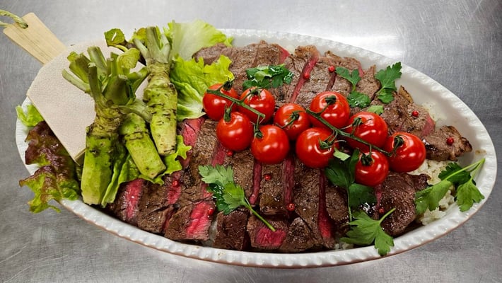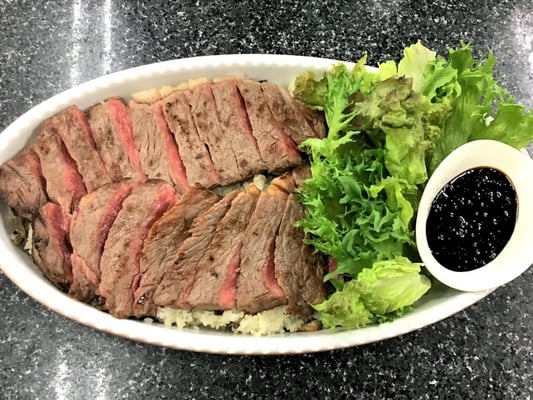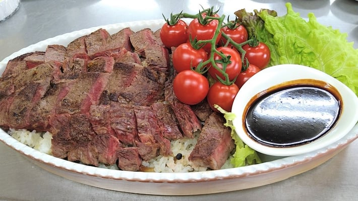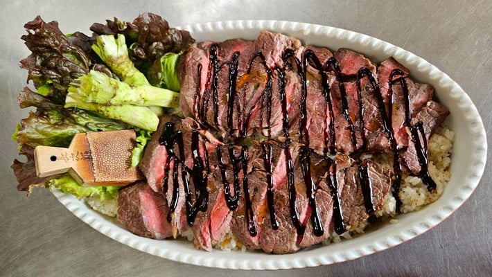 ガーリックライスと黒毛和牛のステーキ丼