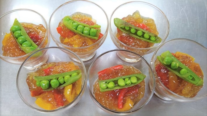 コンソメジュレとパプリカのムース