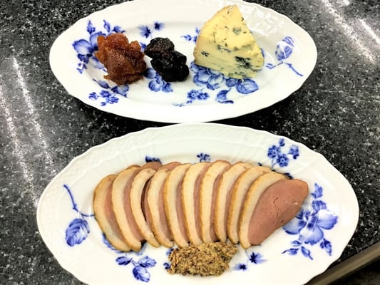 新じゃがのヴィシソワーズ/パンチェッタ・鴨・ドライフルーツとチーズの盛り合わせ
