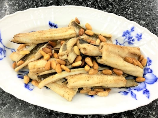 蒸し穴子とアスパラのブールノアゼット
