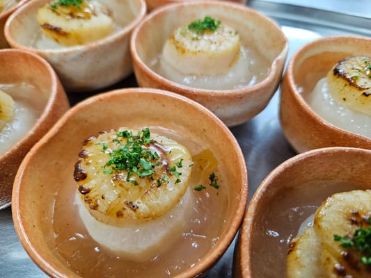コンソメ大根とホタテの焦がしバター添え