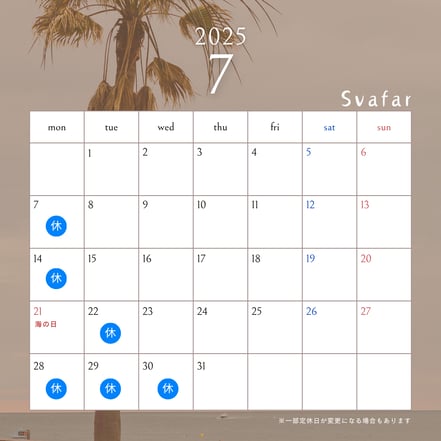 【7月の定休日】