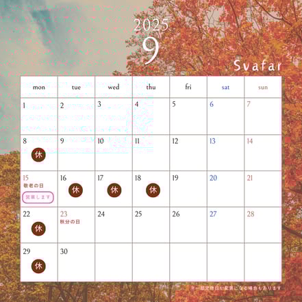 9月のお休みをお知らせいたします
