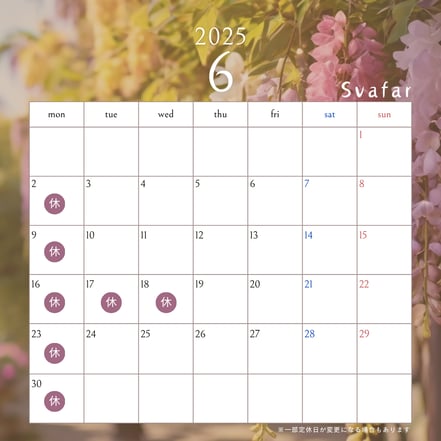 【6月の定休日】